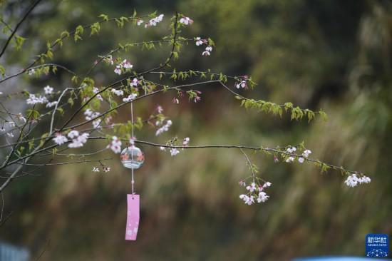 3月15日,建德市三都镇前源村八亩丘山岭上一家民宿前野樱花盛开。