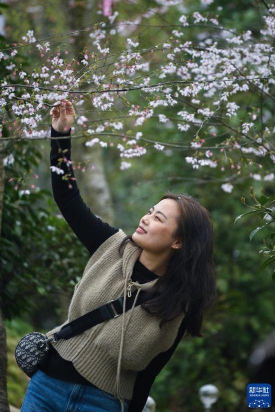 3月15日,游客在建德市三都镇前源村八亩丘山岭上观赏野樱花。