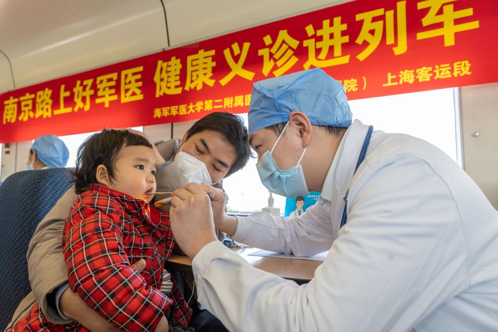 当日是2023年春运最后一天,铁路上海客运段和海军军医大学第二附属医院(上海长征医院)联合在D956次列车上开展健康义诊进列车活动,医生为旅客免费体检,并进行健康教育普及。