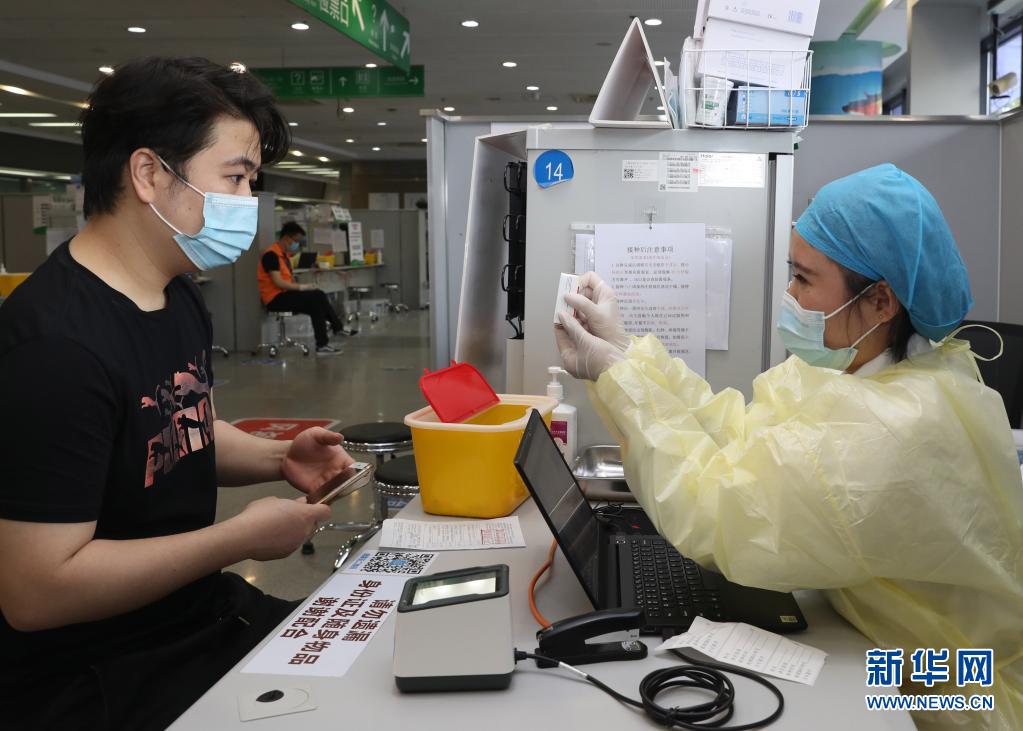 5月18日,在上海市徐汇区凯旋南路接种点,护士为市民接种腺病毒载体疫苗。