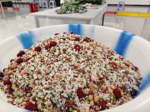 活动现场,糯米晶莹、粽叶青翠,社区老人与志愿者围坐一桌,共同体验包粽之乐。经验丰富的老人化身“技术指导”,手把手传授裹叶、填米、捆扎的要诀,年轻志愿者认真学、用心做,欢声笑语中,一个个饱满精巧的粽子逐渐成形,凝聚着代际间的温暖传递。