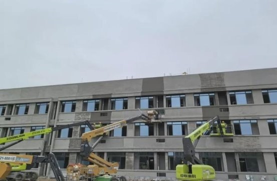 在兰州新区,西北首个头部电动车生产基地——爱玛兰州新区产业园正全速推进,31个单体建筑的主体结构已全部完工,员工宿舍楼已全面转入精装修阶段,工人们正在进行内部隔墙、水电管线铺设及墙面处理。