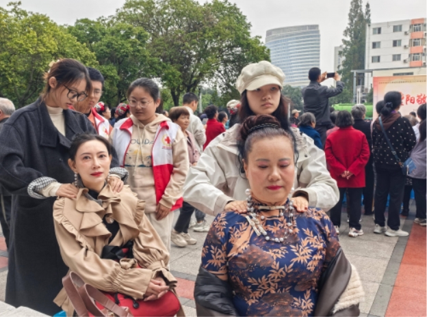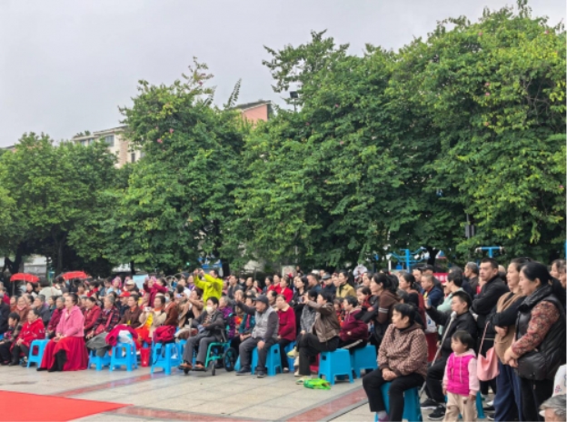 除了文艺盛宴,活动现场设立的“便民服务区”同样人气十足。专业义诊区内,医生团队耐心地为居民提供免费口腔检查、血糖血压测量和推拿按摩服务;健康讲座上,专家用通俗的语言讲解了中老年常见病的预防与保健知识;此外,成都农商银行开展的反诈宣传,为老人们的财产安全筑起一道“防火墙”。这些贴心周到的服务,将关怀落到实处,守护着老人们的身心健康。
