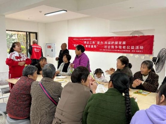 秋意正浓,丹桂飘香。在重阳节来临之际,为弘扬尊老、敬老、爱老、助老的优良传统,丰富社区老年人的精神文化生活,营造和谐温馨的社区氛围,2025年10月28日,由护国社区居委会主办、新都区领航社会工作服务中心承办的“情暖金秋,爱在重阳”社企携手敬老公益活动顺利开展。活动在中航城、蓝光领誉、蓝光映玥三个小区同步进行,形式多样,内容充实,共吸引约120名居民参与,将节日温暖与关怀送至老人心坎。