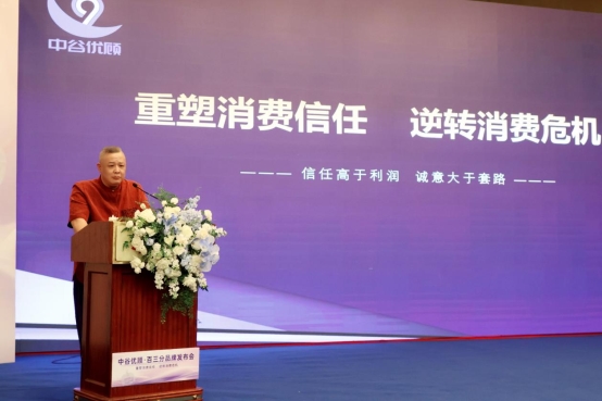发布会伊始,滋补缘泉董事长郑向东先生登台致辞,深入阐释集团战略布局,彰显母公司对中谷优顾品牌发展的全方位支持。中谷优顾创始人谷震先生以 “用硬实力让信任落地” 为核心,详细解读了品牌从原料管控、产品研发到市场服务的全链路诚信建设理念,为整场发布会奠定了 “以信任为核心” 的基调。