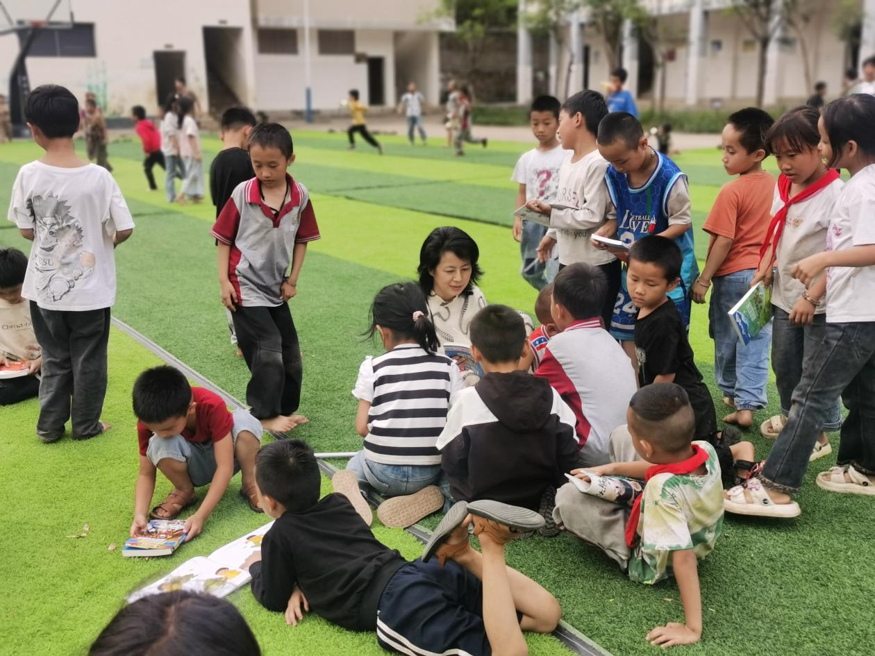 经过一个多月入校开展课堂小故事分享活动之后,杨明蕊同志强烈感受到了孩子们对沉浸式体验阅读的喜爱,同时她也发现每周45分钟的一节小课太短,不足以让她和孩子们分享所有节日和重要纪念日等相关故事。结合她小时候总爱趴着,躺着、站着或默读或朗读或只是随便翻翻或仔细阅读的阅读体验养成的良好阅读惯,以及考虑到孩子们希望她每天都进校探访他们的期盼心理,从2025年5月至驻村工作结束,杨明蕊同志一直开展“校园流动图书馆、“随心所欲”任你读”活动:利用三家小学课休时间,把额外募集来的课外书每天取三四十本带到校园里随意分发给孩子们自由阅读。