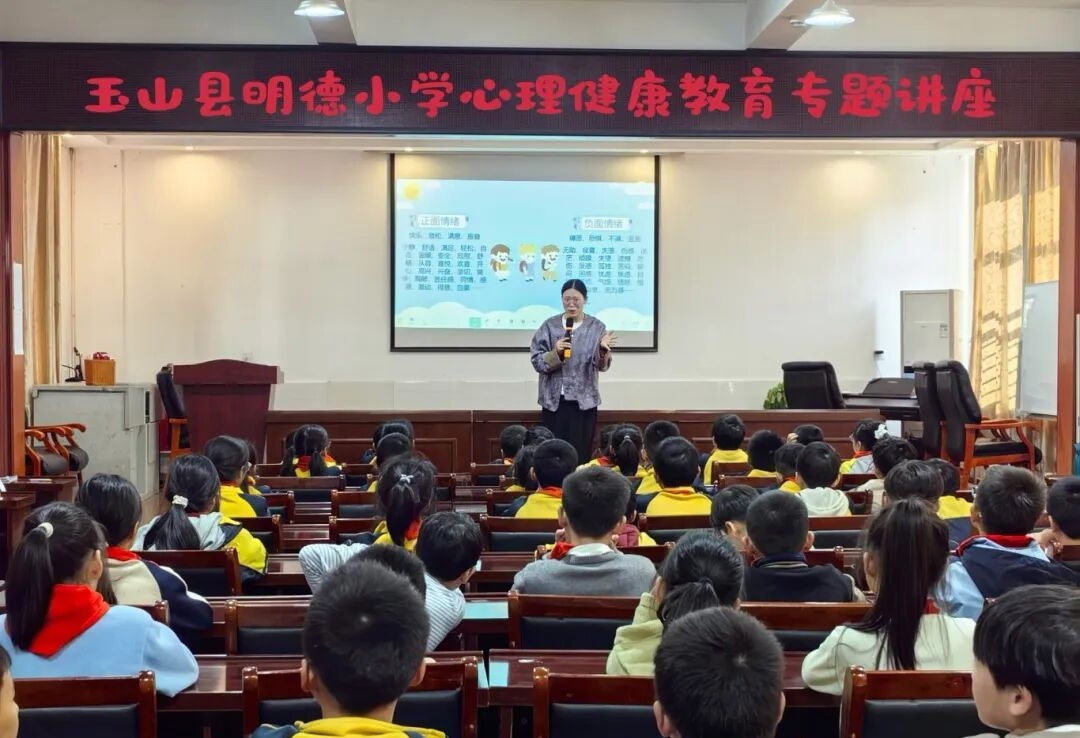 为帮助学生认识情绪、学会管理情绪,江西省上饶市玉山县明德小学特邀心理健康老师曾黄闪,于2025年11月14日下午1:30,在多媒体教室为三至五年级的学生,开展了以“做情绪的小主人——学会管理和表达情绪”为主题的讲座,引导孩子们在互动与探索中解锁情绪管理的“小妙招”。