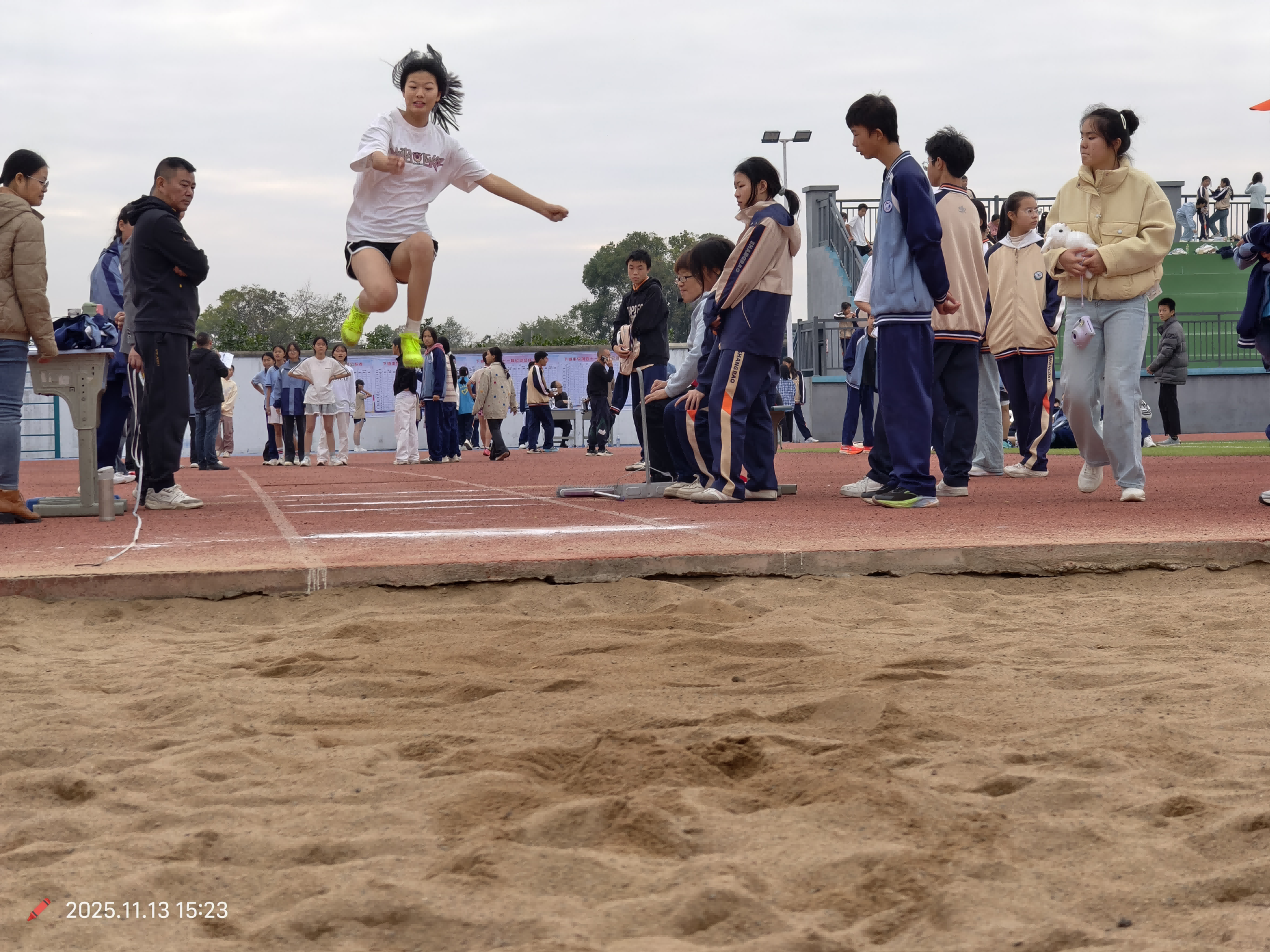 跑道上,有人向着终点全力冲刺,风拂过发丝的速度里,藏着日复一日的蓄力与坚持;也有人即便暂时落后,仍咬紧牙关未曾停歇,每一步都踏响“绝不轻言放弃”的倔强……沙坑旁,跃出的距离或许有长有短,但腾空而起的瞬间,每一位学子都挣脱了自我设限的束缚;横杆前,哪怕一次次与成功擦肩而过,他们仍笑着掸去尘土、重新站定,调整呼吸再出发——这份“敢试敢闯”的勇气,远比最终越过的高度更显珍贵。接力赛道上,接力棒的传递不止是速度的衔接,更是“一人为众,众为一人”的默契与担当……场边的呐喊声从未停歇,同学间的并肩喝彩、师生间的暖心鼓劲,让竞技赛场褪去了冰冷的胜负感,满是滚烫的友爱与尊重,早已比输赢更深入人心。