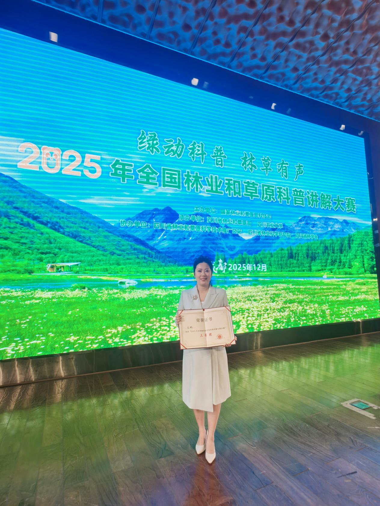 近日,由国家林业和草原局科技司主办,四川省林业和草原局及四川农业大学承办的2025年全国林业和草原科普讲解大赛在成都举行。此次共有42支代表队、171名选手参赛,湖南张家界大鲵国家级自然保护区参赛选手毛盼以《从“活化石”到“生态符”—大鲵保护中的林草智慧》为主题,以通俗易懂的语言、鲜活生动的案例,生动诠释了大鲵物种奥秘、生态价值及保护实践,既有科学性又兼具趣味性,成功斩获三等奖。不仅是对个人专业能力的认可,更是保护区近年来科普宣教与生态保护“双向发力、成果双丰”的有力见证。
