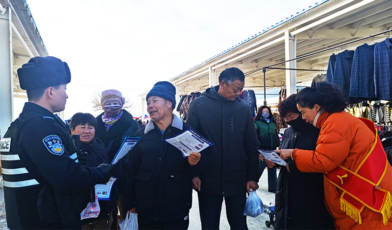 为切实保护人民群众的合法权益,进一步扩大反诈宣传社会覆盖面,不断提高社区以及辖区群众识诈、反诈、防诈的能力。12月22日,新疆兵团第五师九十团司法所利用集市日,联合辖区阿拉山口边境派出所,借力集市人流高峰,开展以电信诈骗普法宣传活动,将反诈知识送到职工群众身边。
