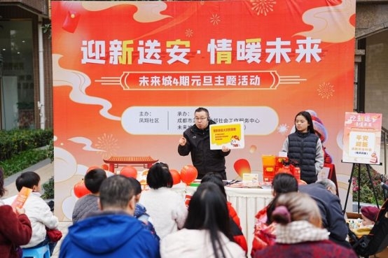 元旦佳节将至,为提升辖区居民居家消防安全意识,营造安全、温馨的节日氛围,12月28日下午,凤翔社区联合爱邻社工在未来城4期精心举办了一场“迎新送安,情暖未来”元旦主题活动。此次活动得到了网格员、未来城4期物业中心的大力支持,吸引了众多居民踊跃参与。