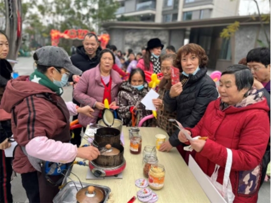此次活动,我们邀请了非遗传承人黄鹤老师给大家带来“吹唐人”表演。她现场用糖稀吹出了各种造型的糖人,还与现场居民和孩子们互动,指导他们吹出自己喜欢的造型,深受居民们的喜爱;现场还设置了传统小吃摊位:蛋烘糕是成都特有的传统小吃,负责制作的阿姨不停地为居民们烤制,不时能听到居民的夸赞声:“味道好极了!”;单车爆米花项目需居民骑单车发电,带动爆米花机爆出香甜可口的玉米花,香气四溢,既好吃又好玩儿;此外,一群小朋友和居民围着小丑叔叔编气球,各种各样的气球在小丑叔叔手中像变魔术一样成型,着实体现了 “高手在民间”;整场活动在大家的欢声笑语中接近尾声。