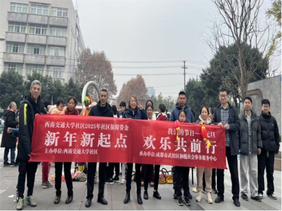 元旦将至,西南交通大学社区于2025年12月28日开展了 “新年新起点,欢乐共前行”元旦游园活动,吸引了众多社区居民参与。活动在保利椿实小广场举行,通过非遗展示、互动游戏和传统美食等形式,营造了欢乐祥和的节日氛围。