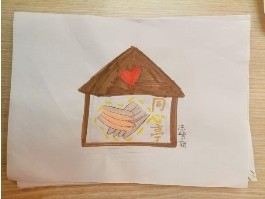 孩子们在创意实践与互动展示中,将知识转化为充满童真的个性化表达。在创作环节,他们运用所学,以简洁线条描绘出亭子、花朵、星星等元素,并赋予其丰富象征意义——花朵喻指邻里友爱,星星象征幸福光明,同心亭寓意团结。作品虽稚拙却真挚,凝结着他们对社区的观察与情感。随后,每位孩子上台阐述设计理念,并通过集体投票评选出前三名,社工为获奖者颁发文具套盒以示鼓励。这一过程既锻炼了儿童的表达与协作能力,也进一步激发了他们的参与热情与社区认同。