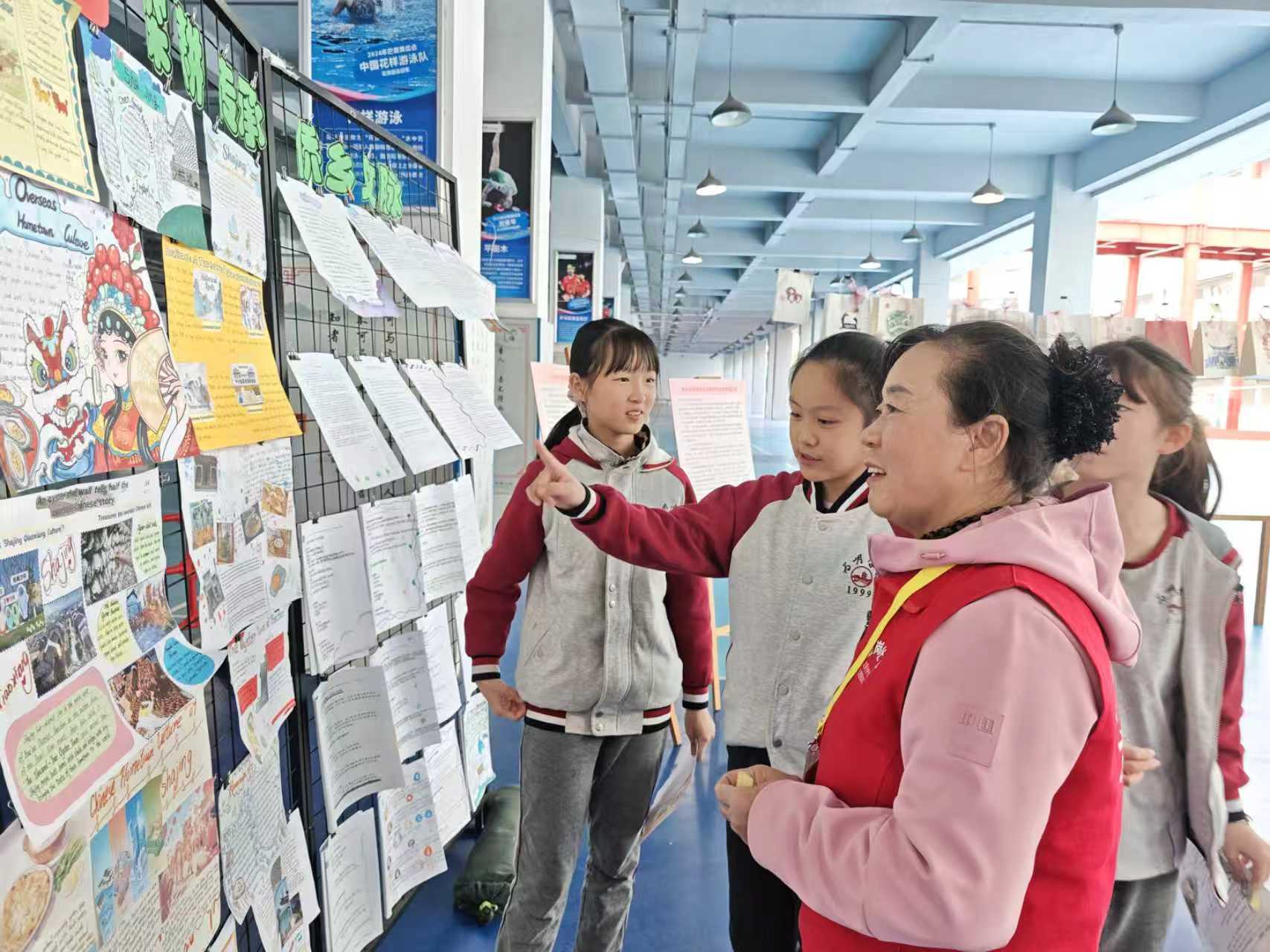 此次成果展上,壆岗社区工作人员、社工、村史馆文脉守护队队长及队员,与为明学校师生一同重温文化探索之旅。大家驻足观看学生的创意画作、详实调研笔记和生动文化演绎作品,不时与解说学生交流互动,深入了解调研细节。值得一提的是,多名学生以村史馆为核心调研阵地,通过查阅史料、采访工作人员与文脉守护队队员、临摹文化元素、整理村志等方式,深挖村史资源,梳理出涵盖历史沿革、民俗风情、名人轶事的详实笔记和摘要,成为成果展的一大亮点。