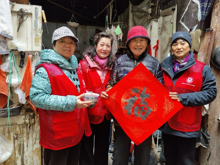 岁至腊八,年味渐浓。正值腊八佳节,浙江省兰溪市云山街道天福山社区开展“腊八传温情 志愿暖邻里”主题活动,福满居志愿服务队化身冬日使者,将熬制好的腊八粥与景区联动书写的福字,送到辖区独居老人手中,让传统节日的暖意与孝老爱亲的美德浸润人心。
