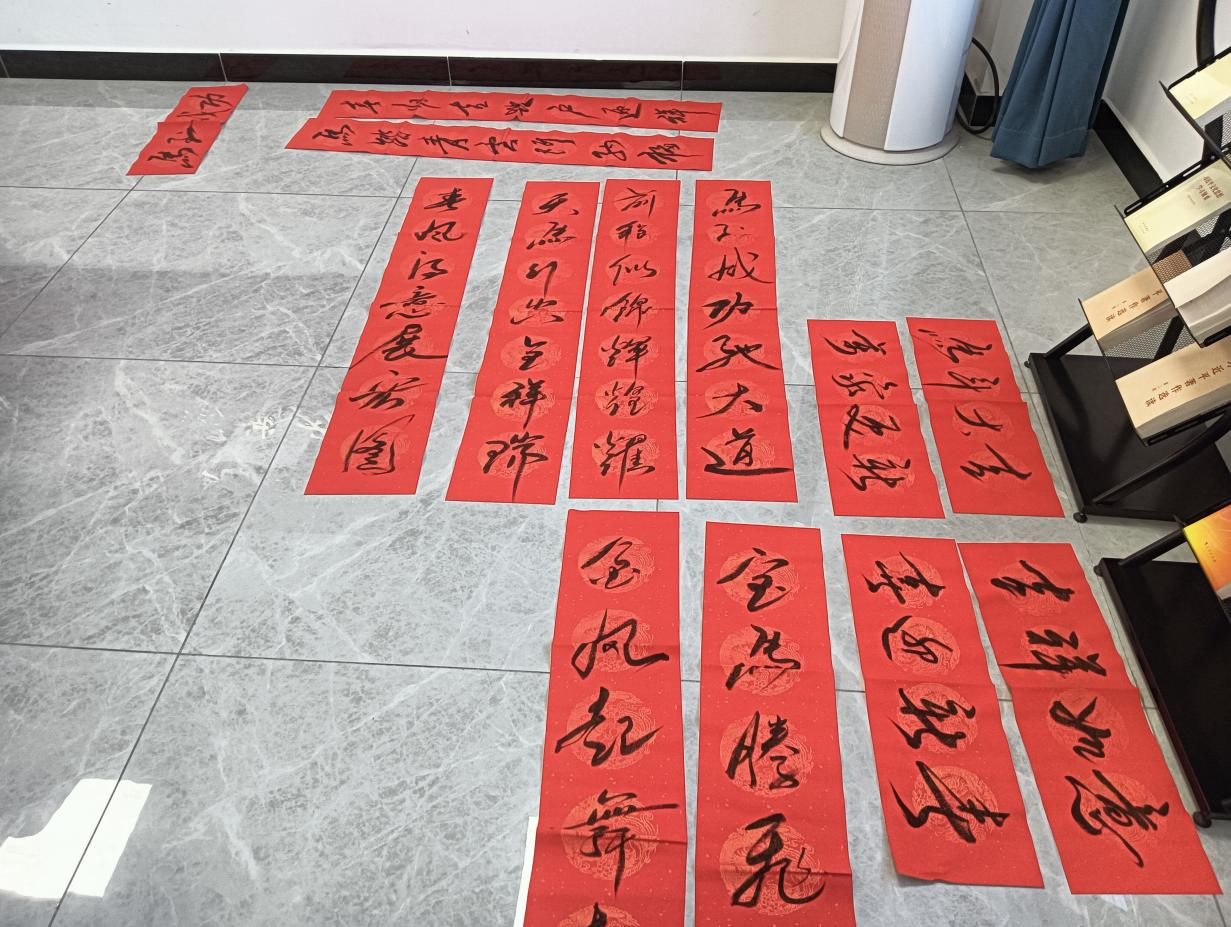 活动现场暖意融融、墨香飘溢。书法老师们凝神运笔、挥毫泼墨,饱蘸浓墨在红纸上笔走龙蛇,一幅幅寓意吉祥的春联、一个个饱满有力的福字跃然纸上。“马跃神州开胜景 平安筑梦暖千家”“消防守岁护民安 社区同心迎马年”等春联,既紧扣马年新春主题,又融入平安消防理念,引得现场消防指战员驻足欣赏、连连称赞。大家围在桌前,挑选心仪的春联内容,与书法老师交流创作心得,在笔墨书香中感受传统文化魅力,现场欢声笑语不断,年味十足。