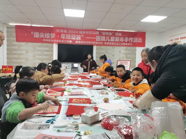 为深化“慈善友邻”公益品牌理念,让困境儿童在传统年味中感受社区关爱与邻里温情,在中共旺苍县委社会工作部,旺苍县2024城乡社区治理“创特色”项目平台的支持下,马家渡社区携手青苗社工主办的“指尖绘梦·年味绽放”困境儿童新年手作活动,在马家渡社区温情启幕。28名困境儿童在社工与志愿者的陪伴下,用双手勾勒新年愿景,为“慈善友邻”新年文创义卖储备爱心佳作。
