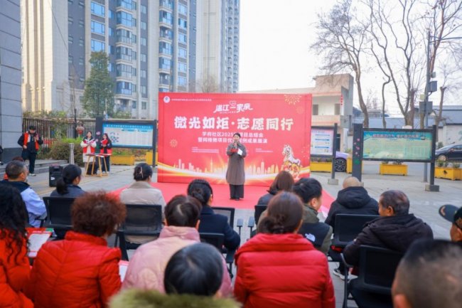 活动在康悦文娱队热情洋溢的腰鼓舞《张灯结彩》中拉开帷幕。学府社区姚瑶副书记发表致辞,对2025年社区各项公益微项目的顺利落地及取得的成效表示肯定,向辛勤付出的志愿者、共建单位及社工机构致以诚挚的感谢。她表示,过去一年,社区依托公益微项目,精准对接居民需求,破解治理难题,推动社区治理从“被动管理”向“主动共建”转变,更有以“一亩田、一餐饭、一杯茶”等故事的深情描绘,希望以此次总结会为契机,进一步凝聚多方合力,持续深化公益服务,筑牢社区治理根基。