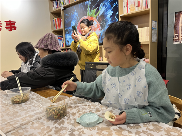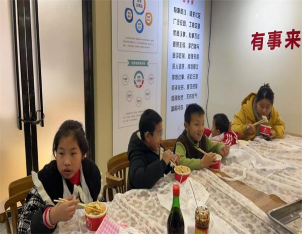 经过一番忙碌,一盘盘热气腾腾的饺子陆续出锅,鲜香四溢、暖意融融。孩子们围坐在一起,品尝着自己亲手包的饺子,脸上洋溢着自豪与幸福的笑容,一口下去,不仅是饺子的鲜香,更是劳动的快乐与团圆的温暖。家长们看着孩子的成长与喜悦,也纷纷露出欣慰的笑容,大家边吃边聊,畅谈阅读感悟、共话邻里情谊,让整个活动现场充满了家的温馨。