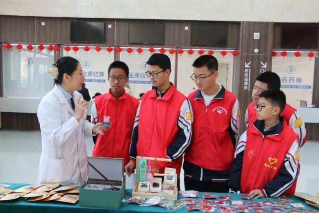 值得一提的是,来自德州市第五中学的老师和学生们也走进活动现场,开展了一堂生动的中医药文化实践课。同学们专注临摹中医经典名句,亲手触摸辨识各类药材,并通过采访互动、志愿服务等方式,沉浸式体验中医药的独特魅力。他们在实践中不仅加深了对中华优秀传统文化的理解,更让中医药文化的种子在青春心田悄然播下,静待生根发芽。