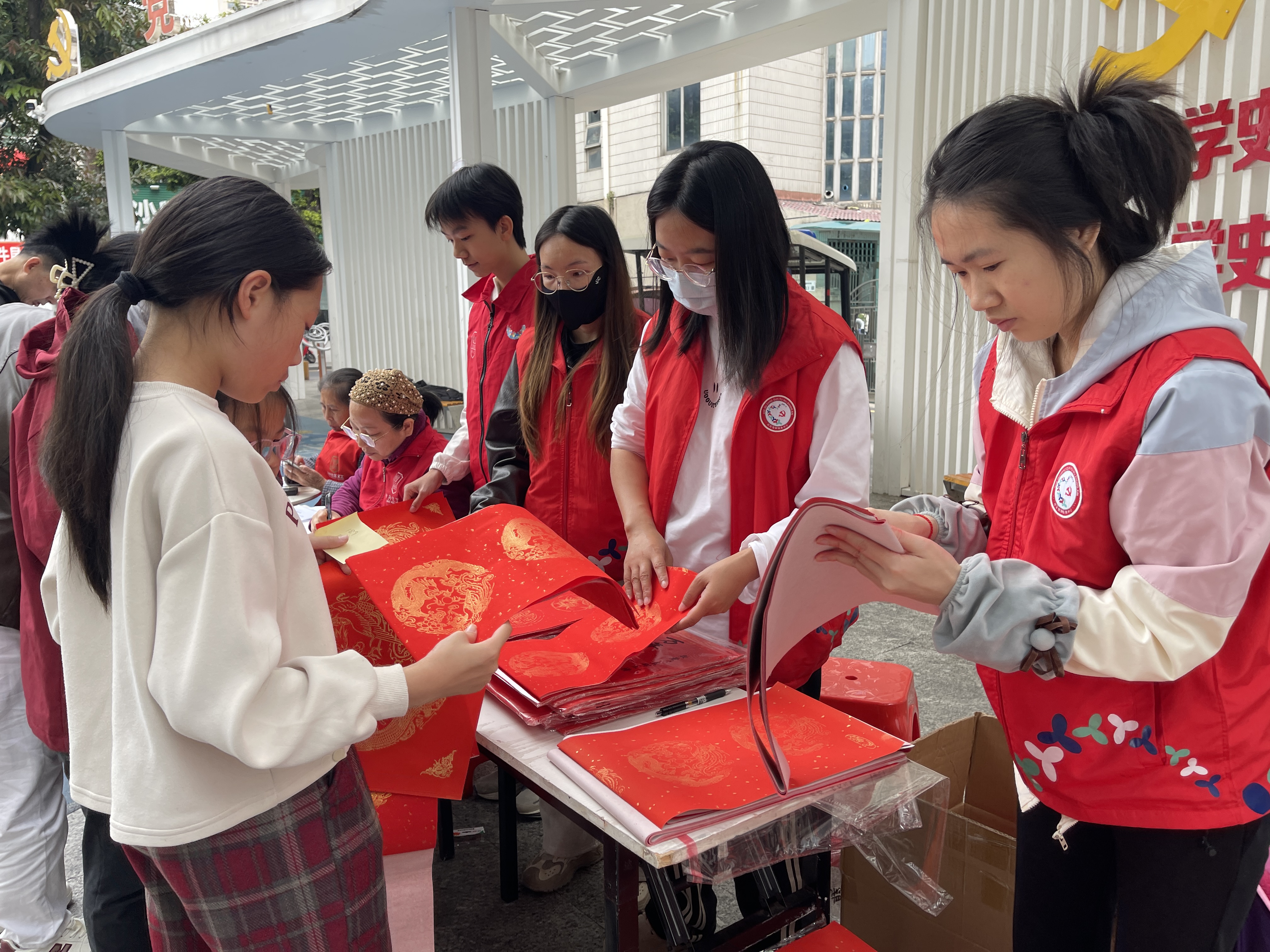 此次活动切实将温暖送到群众心坎上,共送出200份现写春联、150份“福”字,不仅为即将到来的马年新春增添了浓厚年味,更以笔墨为媒,搭建起企业与居民、邻里之间的沟通桥梁,进一步凝聚了企民同心、邻里和睦的强大合力,让辖区居民在墨香氤氲中感受社区关怀与新春暖意。