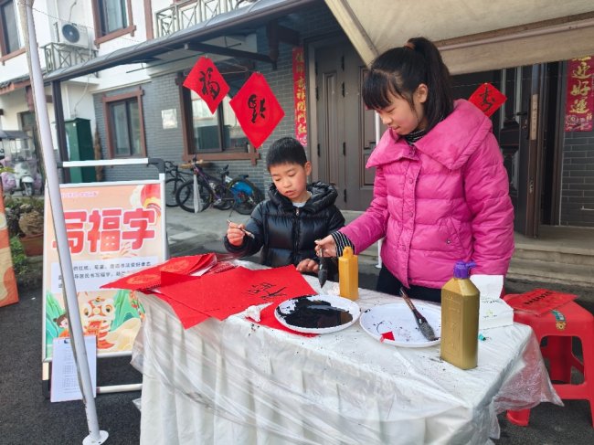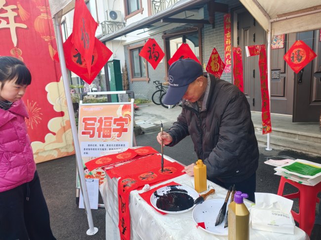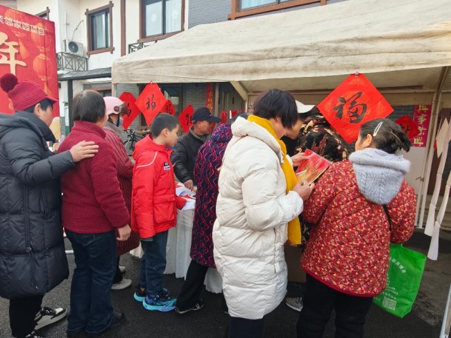翰墨书福添喜气,红联映院满庭春。活动现场年味浓郁,书法爱好者挥毫泼墨,一幅幅春联、一张张福字墨香满溢,居民们驻足欣赏、有序领取,将新春祝福与美好期盼带回家。新春知识问答区大家踊跃参与,幸运投“福”区笑声不断,中医服务区为居民免费测量血压血糖、普及养生知识,美食区香气阵阵、暖意融融,处处呈现出邻里同乐、喜庆热闹的节日景象。