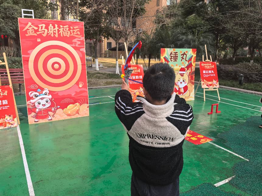 为传承中华传统年俗文化,营造祥和温馨的新春氛围,进一步拉近邻里距离、凝聚社区共治合力,近日,笼堰社区居委会联合崇州中公社工、小区业委会、光华瑞廷小区物业服务中心、小区活动共创成员,在小区羽毛球场成功开展“瑞马迎新春 共治暖邻里”迎新春游园会,吸引小区各年龄段居民踊跃参与,共庆新春、共话治理、共筑美好。
