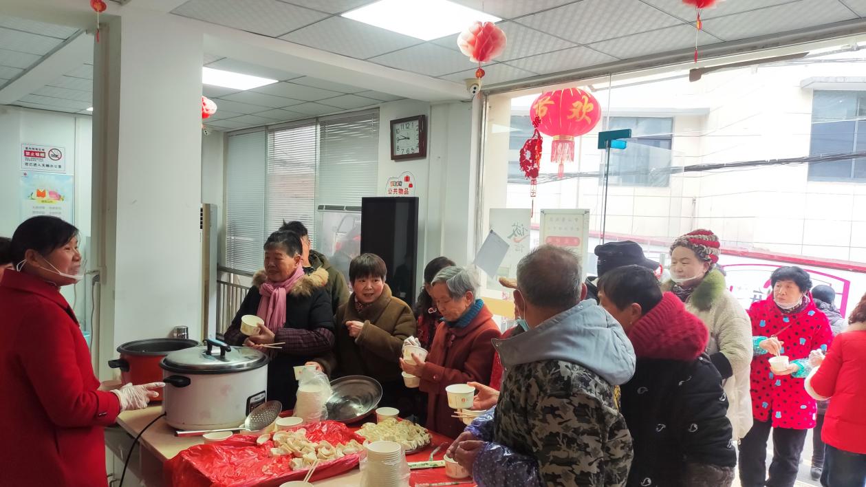 烟火气最浓的,当属现场的两口大锅。一口油锅翻滚着金黄酥脆的虾片和春卷和油炸翻饺,香气四溢;另一口大锅则沸腾着刚包好的饺子,白胖的饺子在汤中起伏,热气蒸腾。老人们围在锅边,一边品尝着新鲜出炉的美食,一边唠着家常。“这饺子吃着真香!让我们这些老街坊又找回了以前过年时一起做饭的热闹劲儿!”82岁的王大爷捧着碗,笑得合不拢嘴。油锅边的志愿者则忙个不停,将炸好的虾片分装到小碗里,递到每位老人手中,这份带着油香与温情的“伴手礼”,让现场暖意更浓。