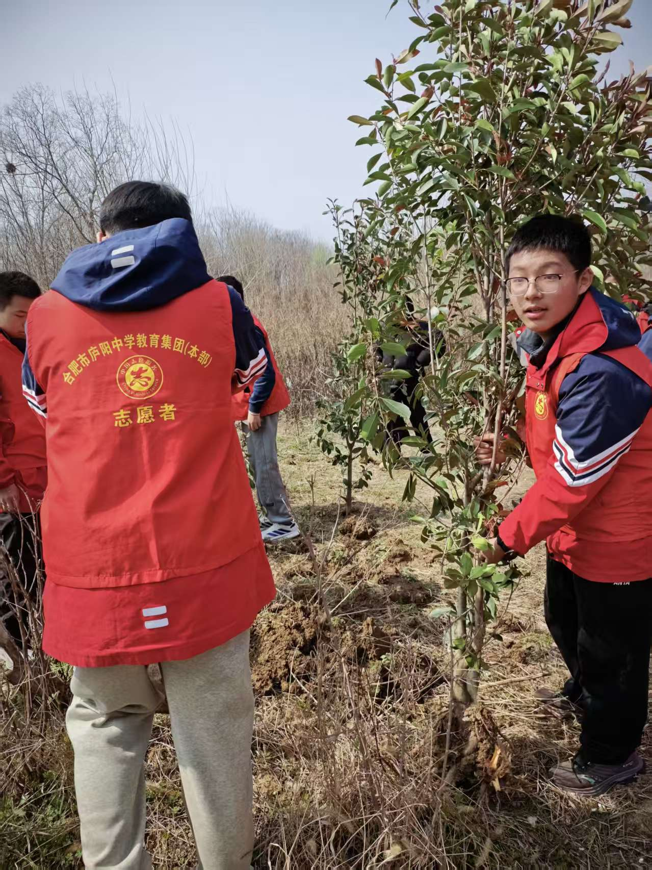 活动现场,来自两所学校的师生志愿者与小红帽公益的志愿者们身着红马甲、头戴小红帽,成为春日里一道亮眼的风景线。在植树区域,大家分工明确、默契配合,挖坑、扶苗、填土、踩实、浇水,每一个步骤都有条不紊、一丝不苟。经开区的学子们亲手为树苗挂上精心制作的保护牌与心愿卡,庐阳中学的志愿者们则主动帮扶低年级同学,用互助诠释责任。经过一番辛勤劳作,栽下的棵棵新苗迎风挺立,为大地铺就了一片崭新的绿装。