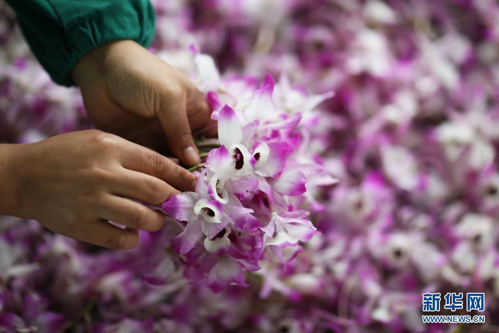 近日,贵州省赤水市长沙、长期等乡镇种植的金钗石斛花陆续进入盛花期,当地农民忙着采摘、加工鲜花供应市场。赤水金钗石斛为中国传统中药材,近年来,赤水市积极推进生态农业产业与乡村振兴融合发展,采取“合作社+支部+农户”模式,引导农户在丹霞石上种植金钗石斛9万余亩,带动当地农民增收。