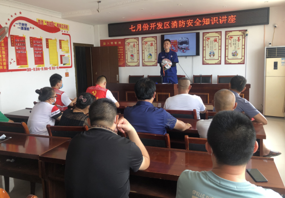 为进一步提高辖区居民消防安全意识,让群众掌握突发状况下灭火、逃生的技能,7月21日下午,江苏省盐城市射阳经开区中心村新时代文明实践站邀请县消防支队到中心村的道德讲堂为辖区的居民们“零距离”传授消防知识,增强群众防火抗灾能力,铸牢全村生命安全“防火墙”。