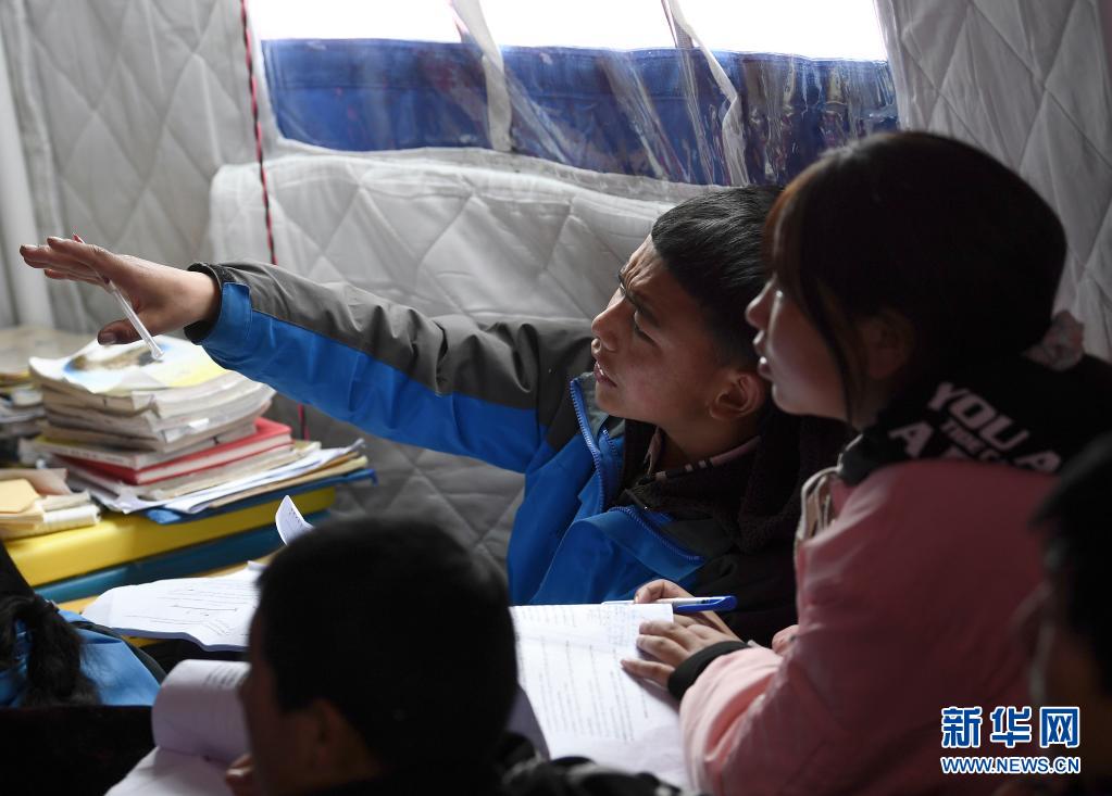 当日,记者在青海省果洛藏族自治州玛多县民族寄宿制中学救灾安置点了解到,该安置点九年级与六年级的164名学生在帐篷教室逐步复课。