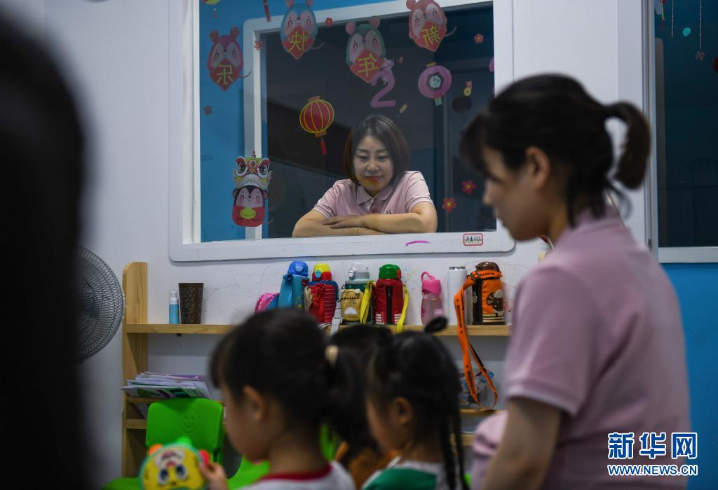 5月25日,周敏在芜湖市翰宁教育尊纳儿童发展中心观察孩子们的活动。