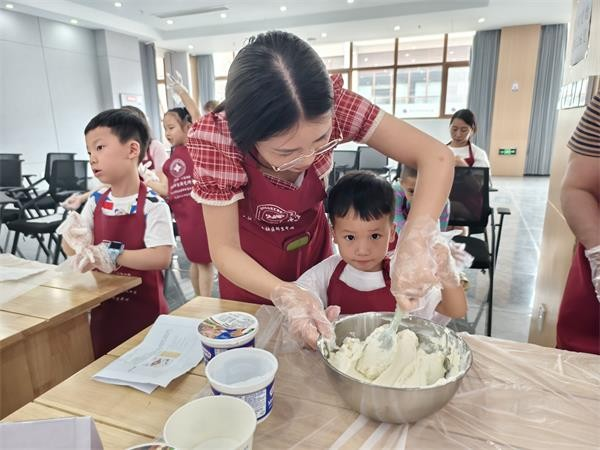 在大学生志愿者的协助下,家长和孩子们纷纷动手,认真学习提拉米苏的制作流程。从准备材料到搅拌、烘焙,再到最后的装饰,每一个步骤都凝聚了大家的快乐。经过一番努力,一盒盒色香味俱佳的提拉米苏终于呈现在大家面前。