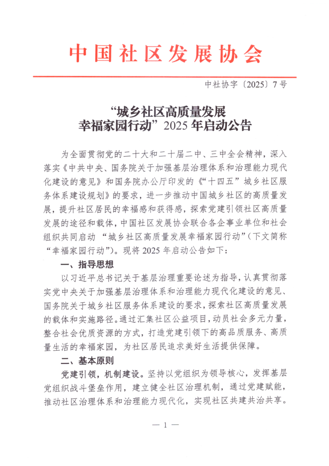 “城乡社区高质量发展 幸福家园行动”2025年启动公告