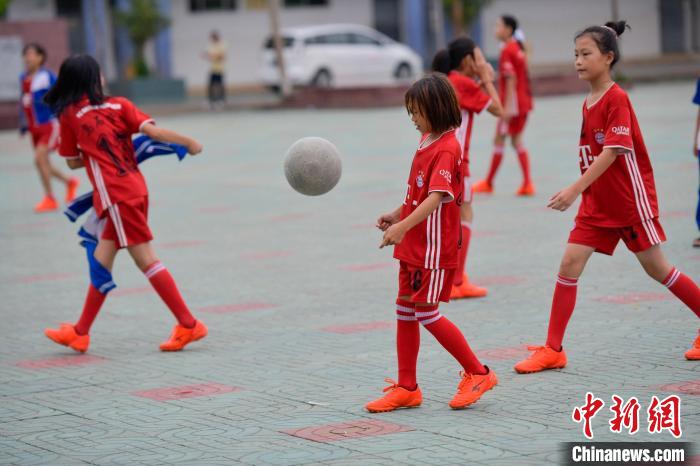 海南琼中黎族苗族自治县乌石学校的学生足球队训练现场。