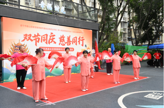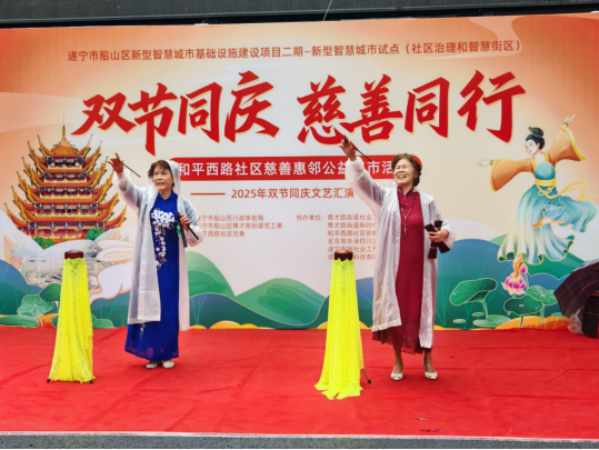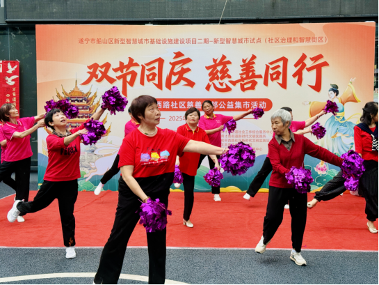 本次活动由遂宁市船山区行政审批和数据局、遂宁市船山区育才路街道办事处、和平西路社区党委联合主办,育才路街道社会工作综合服务中心、育才路街道新时代文明实践所、和平西路社区新时代文明实践站、遂宁市第三人民医院、北京易华录四川公司、遂宁春晖社会工作发展中心、成都睦羚科技有限公司等多家协办单位共同参与,以“智慧社区+慈善公益”为主线,通过“文艺演出+慈善集市+智慧服务”的创新模式,不仅营造出浓厚的节日氛围,更让居民在便捷、互动、有趣的体验中感受到公益的温度与智慧社区的便利。