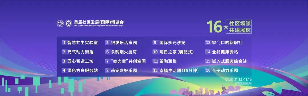 三十载栉风沐雨,中国社区发展完成从“单位制”到“社区制”的转型、从“管理”到“治理”的升级,实现基础配套向智慧赋能、单一行政推动向多元协同参与的跨越式发展。首届社博会的举办,正是对这一历程的集中检阅——10000平方米展区内,八大主题板块将系统呈现我国社区治理的300余个典型案例,其中既有北京“回天行动”的区域协同经验,也有浙江“未来社区”的数字化实践,更有成都“百千万工程”的城乡融合成果。