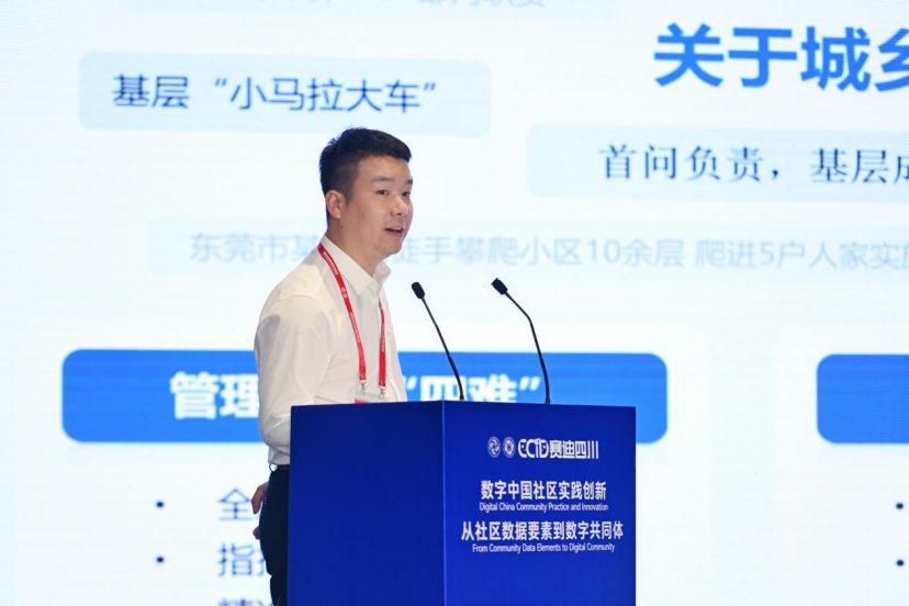 科大讯飞智慧城市解决方案部产品总监许宏伟基于“讯飞城市数据要素流通方案”,分享了运用“AI社工”“基层AI百事通”等治理工具激活基层高效能治理新动能,解决社区工作者“四繁杂”、社区居民“四不满”,通过“讯飞星火”照亮数字中国社区的典型应用场景和实践案例。