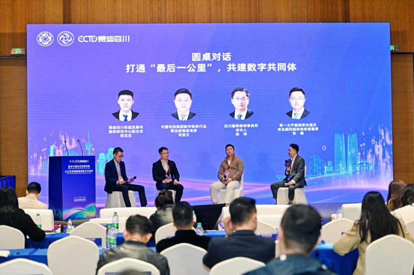 赛迪四川街道发展与服务研究中心副主任杨龙龙、中国电信集团数字政务行业事业部高级专家宋宝文、四川蓉桦律师事务所合伙人徐伟、第一太平戴维斯估值及专业顾问服务部助理董事张植,围绕“当前构建社区治理数据闭环的最大障碍”“如何平衡数据开发利用与个人隐私保护,让居民在数据赋能中有真正的获得感”“数据从资源到资产,可行的商业化路径以及建立合法、健康、可持续的运营模式”等话题,展开了一场坦诚务实又精彩睿智的对话。