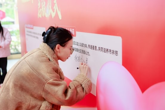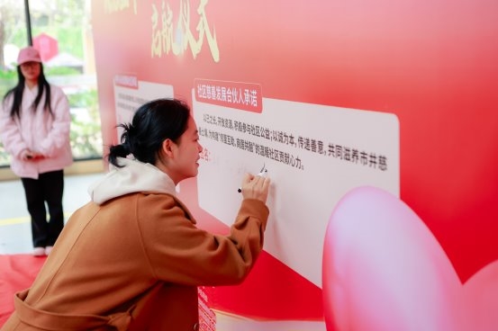 活动现场设置了别具意义的“双向承诺”环节。刘燕委员首先代表社区在背景喷绘墙的左侧郑重签字,承诺为慈善合伙人提供支持与服务;随后,所有爱心单位代表依次于右侧签署慈善合伙承诺书,以“合伙人”身份加入菱窠社区慈善网络。这一环节的设计,彰显了社区与社会力量从“单向帮扶”走向“共建共治”的转变。