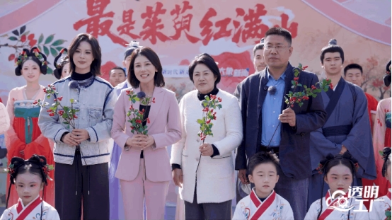 节目组嘉宾在茱萸林采摘山茱萸。