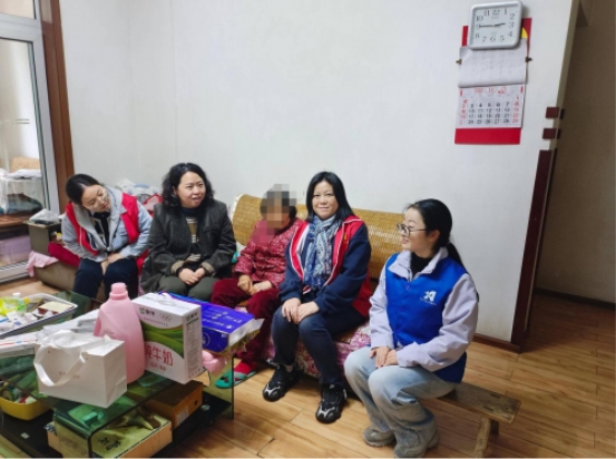 德通桥社区党委副书记尹江峰、社区两委、工作人员和爱心企业代表每入一户,都会热情地与居民聊家常,详细了解他们生活状况和身体情况,耐心嘱咐注意防寒及日常用火用电用气安全,叮嘱他们有什么困难和问题可随时向社区反映,鼓励他们保持乐观的心态积极面对生活,并为他们送上米面、抽纸、洗衣液等物资。