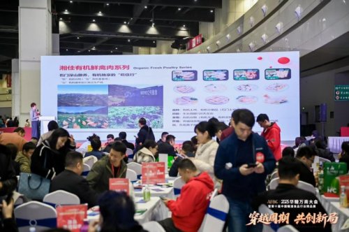湘佳美食,心动世界——湘佳股份携源自湖南壶瓶山麓的深山散养石门土鸡,惊艳亮相本次展会。展会现场,湘佳展位前人头攒动、人气爆棚,冰鲜石门土鸡、盐焗鸡、椒麻鸡等系列产品引得客商纷纷驻足品鉴。其中,多款口味的卤制品、休闲零食及预制菜产品,更是凭借出众品质收获全场青睐。
