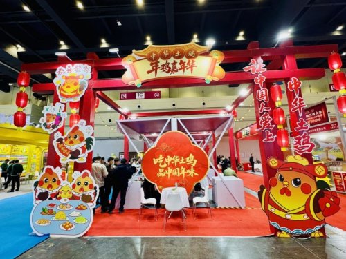 在展会现场,中华土鸡展位以“中华土鸡·年鸡嘉年华”为主题进行布置,营造出浓厚的节庆氛围。“吃中华土鸡 品中国年味”,传统民俗文化元素在展位设计中得到充分体现,吸引大量参会者驻足拍照。