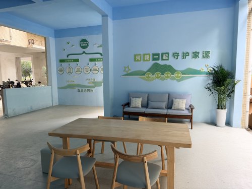 针对志愿者巡河工作强度大、需定期开展培训交流的特点,休息交流区以“实用便民、温馨舒适”为建设原则,配置沙发两组、会议桌椅2套。该区域不仅是志愿者巡河间隙的休息场所,更承担着队伍培训、工作研讨、经验分享的重要功能。同时,区域角落精心摆放绿植,既美化了环境,又传递了绿色生态理念,让志愿者在休憩交流中感受温暖与活力。