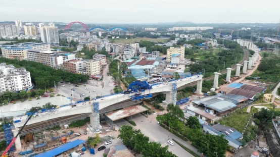 11月22日,中交一公局集团承建的平陆运河钦北线铁路桥改建工程跨新华路72米悬浇连续梁中跨合龙,为全线按期通车创造了有利条件。