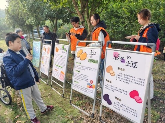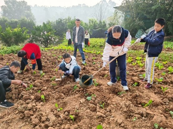 活动当日,参与人员统一乘车,有序前往活动地点。抵达后,众人积极投身乡村田野,在驻地工作人员的带领下学习关于农耕的相关知识。诸如“土豆分为哪几种?”“黑油菜和黄油菜有何区别?”等兼具知识性与生活关联性的问题在此得到了充分解答。随后,儿童及其监护人走进田间农地,沉浸式感受农耕文化的魅力,参与松土、插苗、施肥、浇水等农事活动。在实践操作过程中,每个孩子都热情高涨,原本性格较为内向的部分小朋友也积极参与其中。