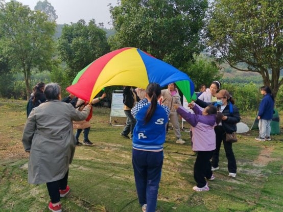 下午,社工充分发挥专业引领作用,带领参与者开展心理团体辅导活动。通过“七彩彩虹伞”“水果大作战”等形式多样的互动游戏,助力儿童准确识别基础情绪的表达方式,引导他们学会以恰当的方式宣泄和调节情绪,进而提升情绪管理能力。在游戏过程中,孩子们积极参与,现场气氛热烈欢快。